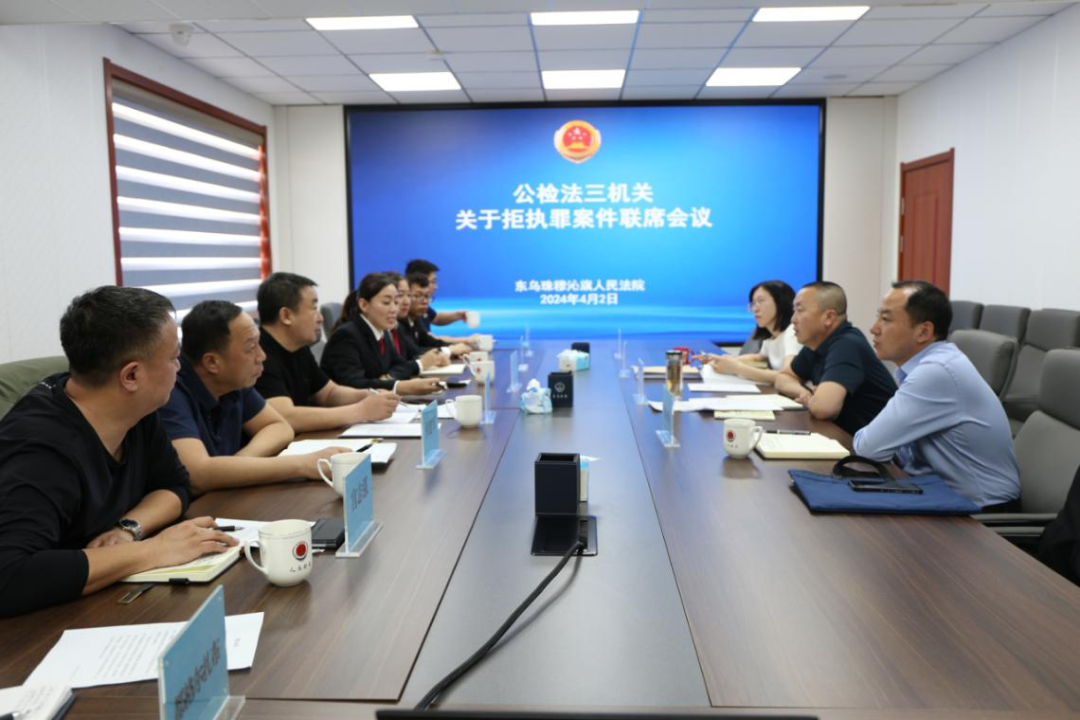 2024年4月,东乌珠穆沁旗人民检察院联合旗委政法委牵头东乌珠穆沁旗人民法院、东乌珠穆沁旗公安局召开联席会议,就拒不执判决、裁定案件的线索移送、立案标准、证据认定、协作配合等方面达成共识。