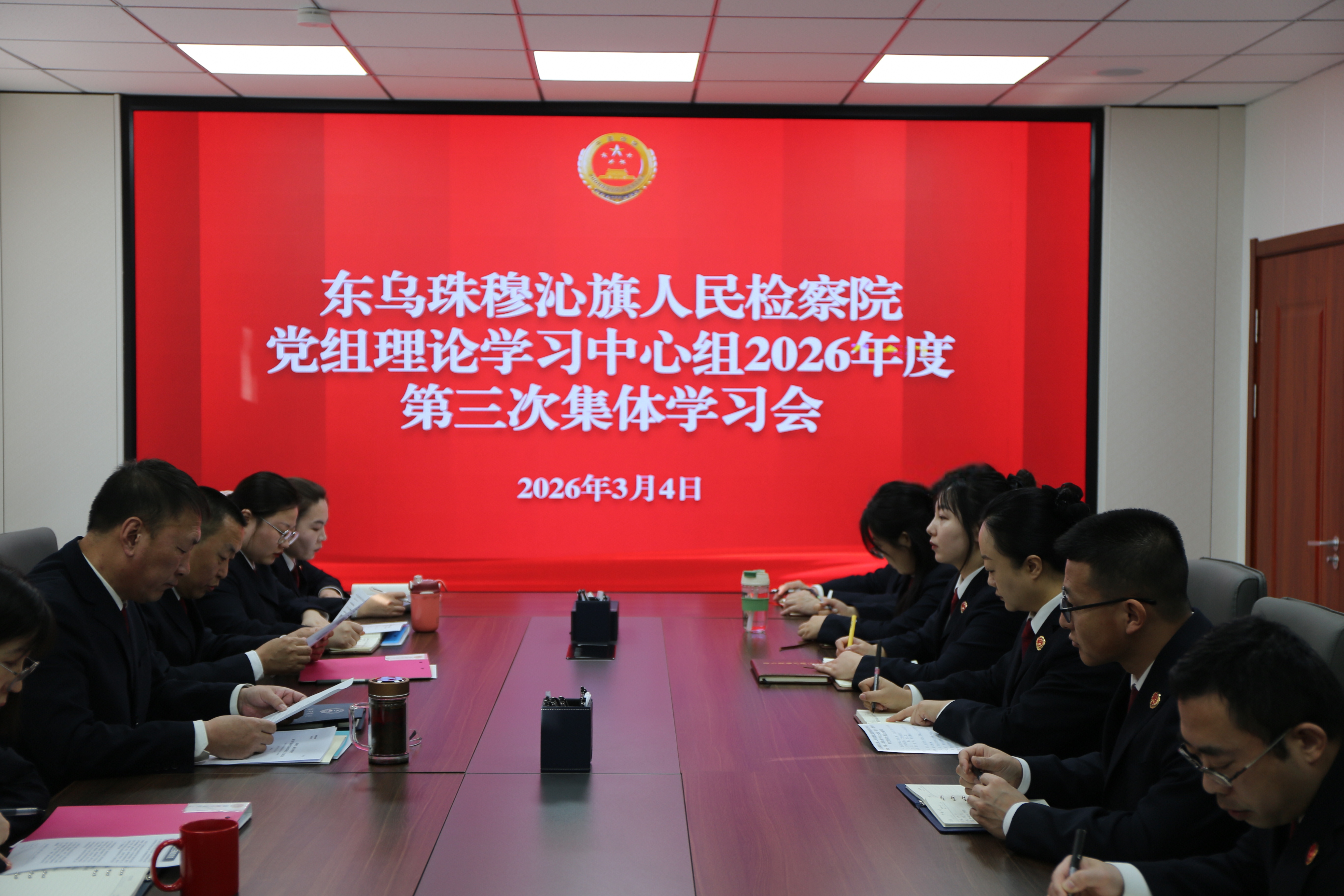 34日,东乌珠穆沁旗人民检察院召开党组理论学习中心组2026年度第3集体学习会,党组理论学习中心组成员参加会议。